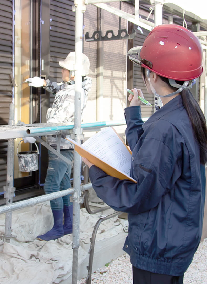 - 現場では、技術を持った職人さんたちによる、安全・安心な仕事を心掛けます。