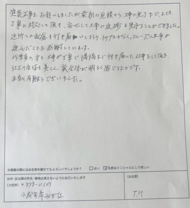 弊社は、情報多く、物価高の時代にあって、 お客様から『頼んでよかった』と信頼と安心をいただけるような仕事に励み、地域社会への貢献に尽力できればと願っています。
