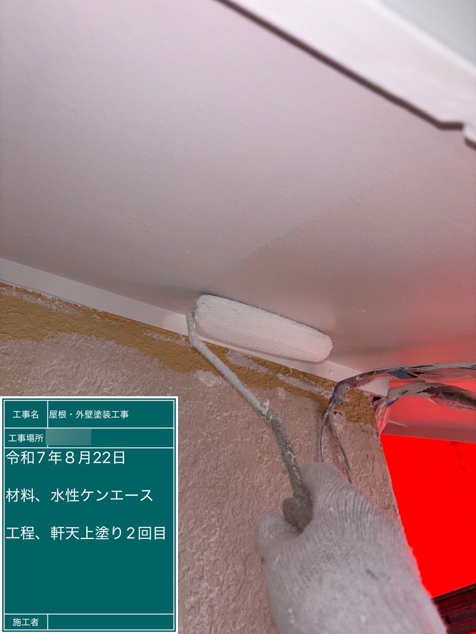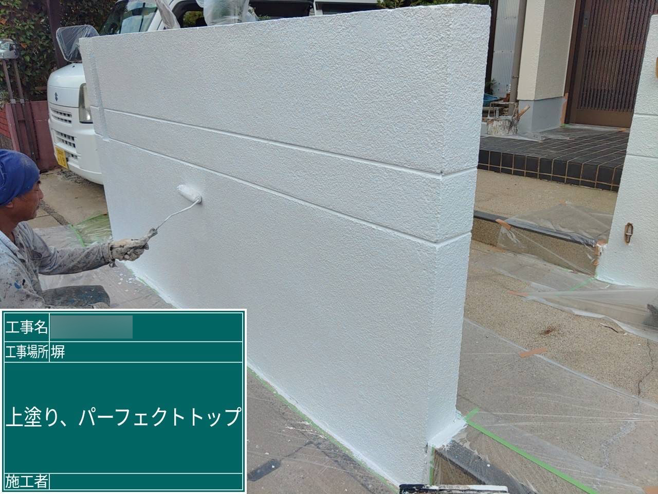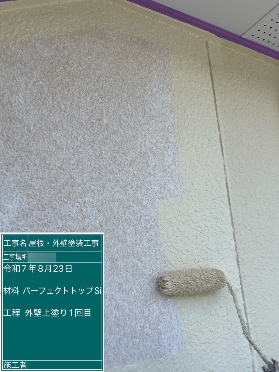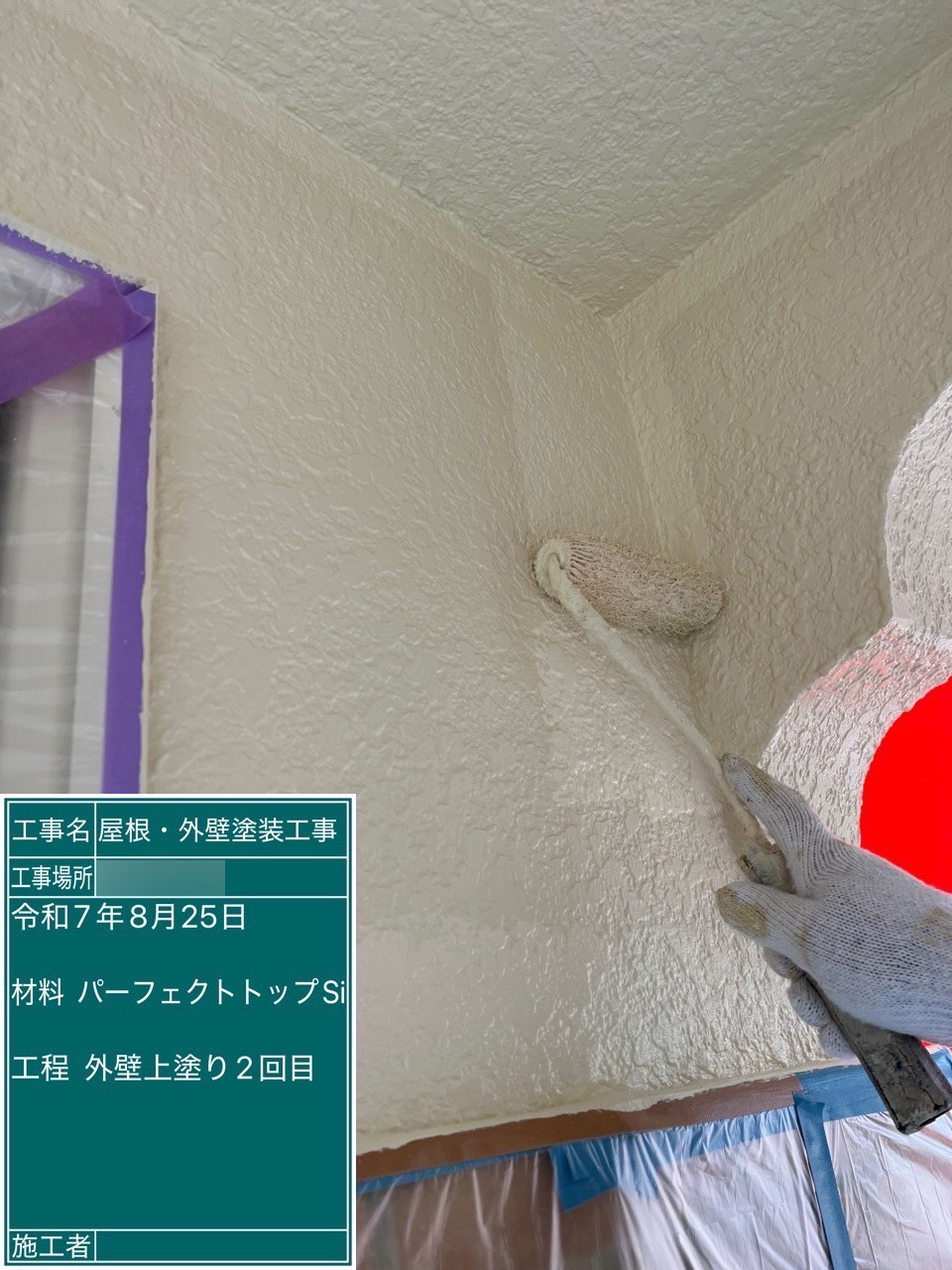 施工内容 | 外壁 門柱 高圧洗浄 外壁 下塗り ファインパーフェクトシーラー 中上塗り パーフェクトトップ 雨樋 ケレン 下塗り ファインパーフェクトシーラー 中上塗り ファインパーフェクトトップ 雨戸 格子 ケレン 下塗り ハイポンファインプライマーⅡ 中上塗り ファインSi 軒天 下塗り カチオンシーラー 中上塗り 水性ケンエース 門柱 下塗り カチオンシーラー 中上塗り パーフェクトトップ 基礎 下塗り カチオンシーラー 中上塗り ペースプロテクト |