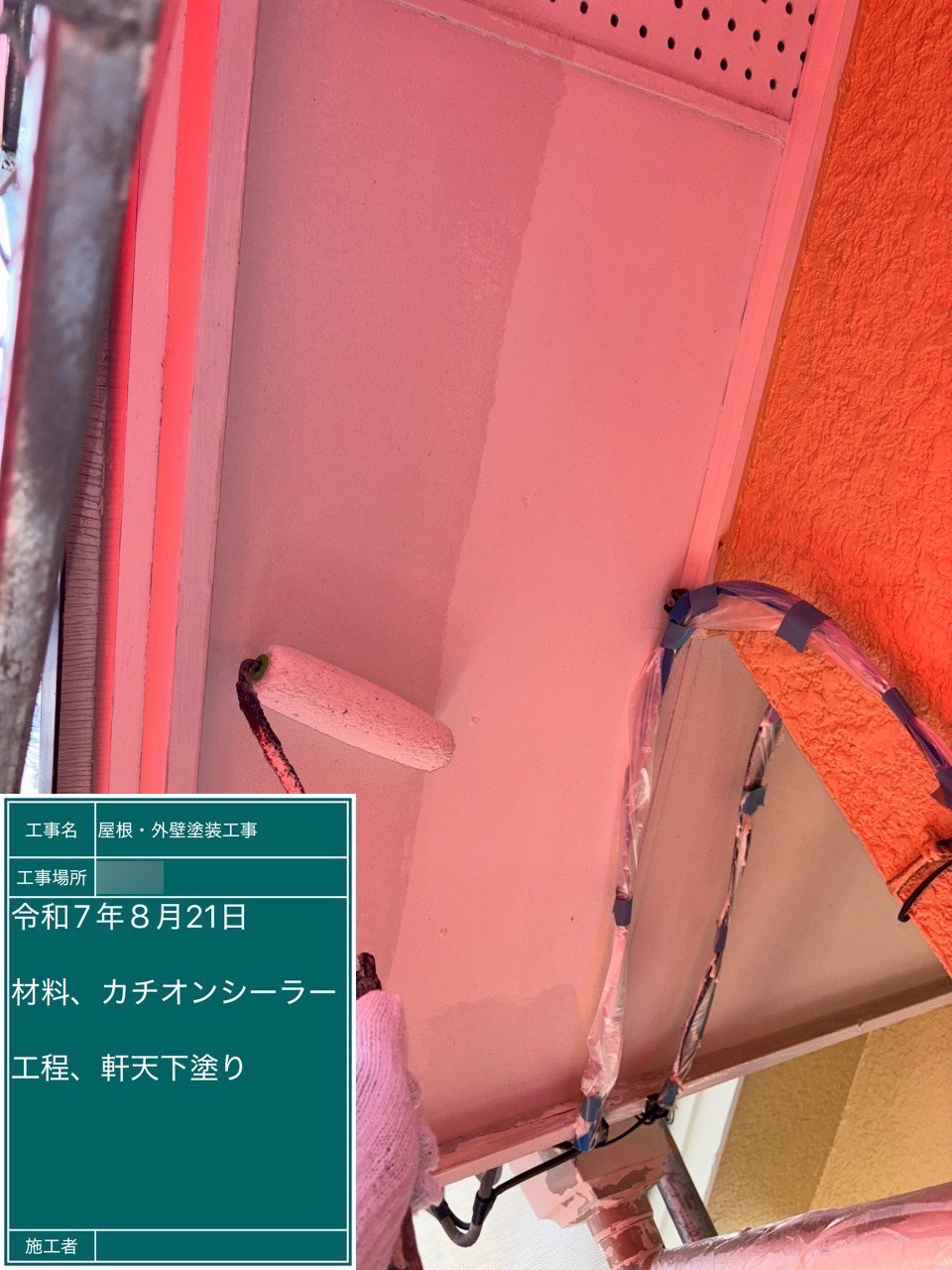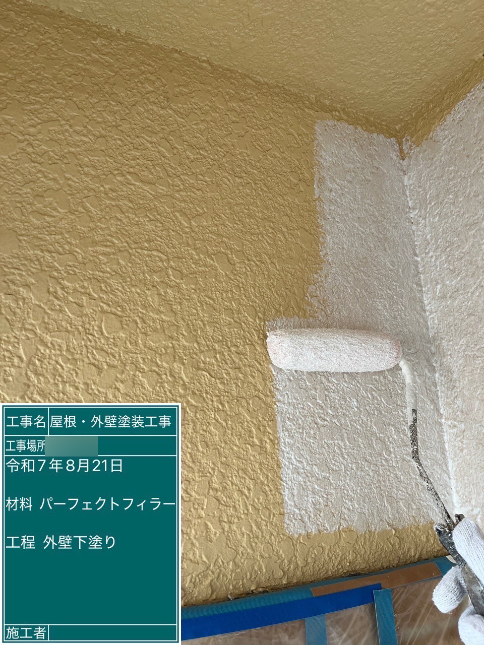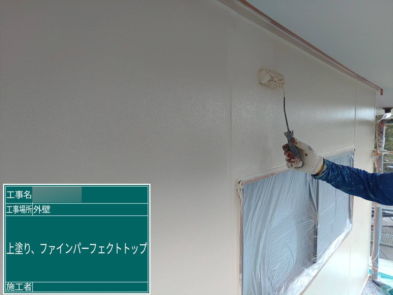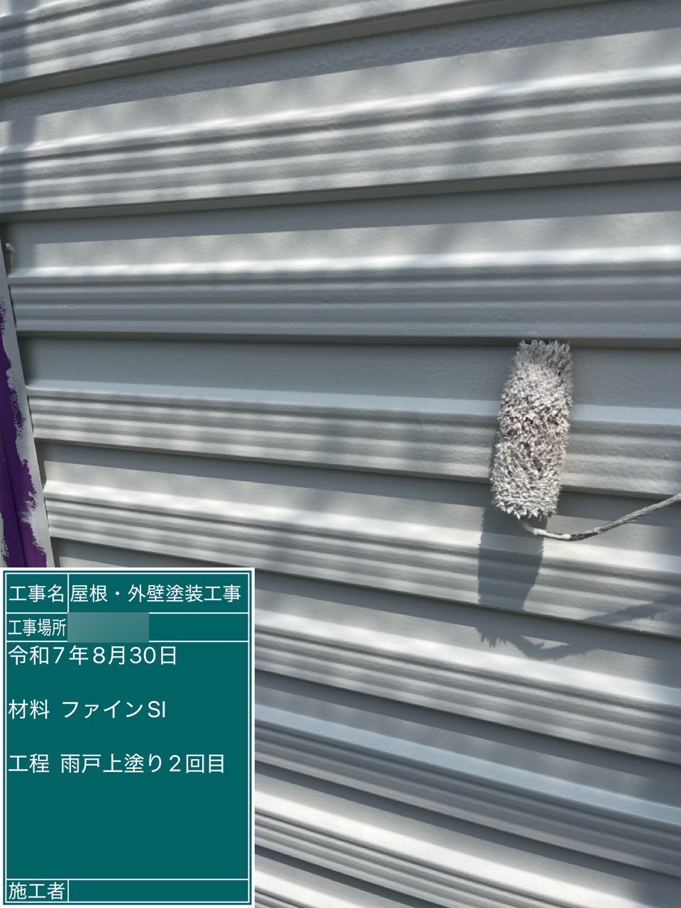施工内容 | 外壁 門柱 高圧洗浄 外壁 下塗り ファインパーフェクトシーラー 中上塗り パーフェクトトップ 雨樋 ケレン 下塗り ファインパーフェクトシーラー 中上塗り ファインパーフェクトトップ 雨戸 格子 ケレン 下塗り ハイポンファインプライマーⅡ 中上塗り ファインSi 軒天 下塗り カチオンシーラー 中上塗り 水性ケンエース 門柱 下塗り カチオンシーラー 中上塗り パーフェクトトップ 基礎 下塗り カチオンシーラー 中上塗り ペースプロテクト |