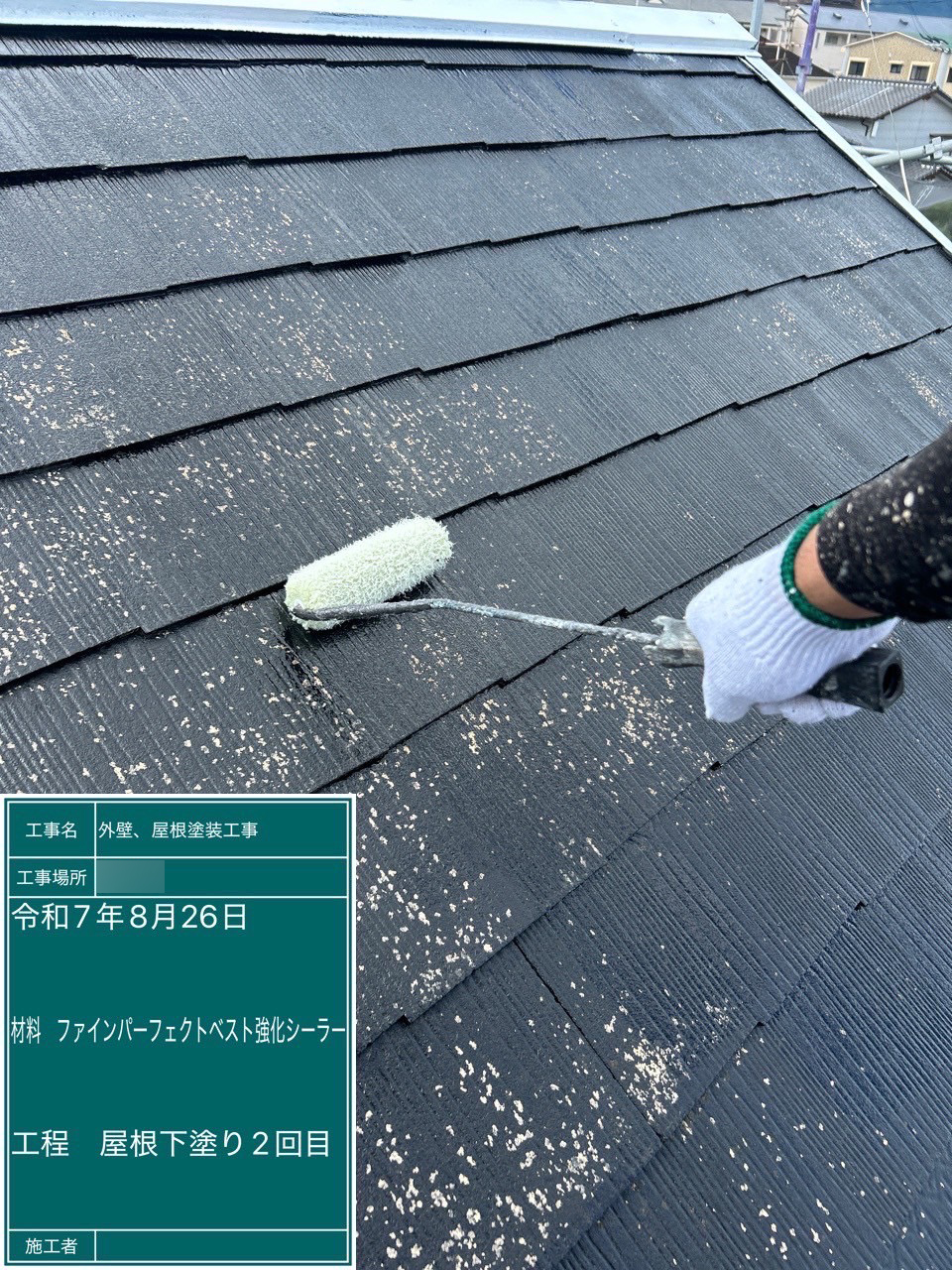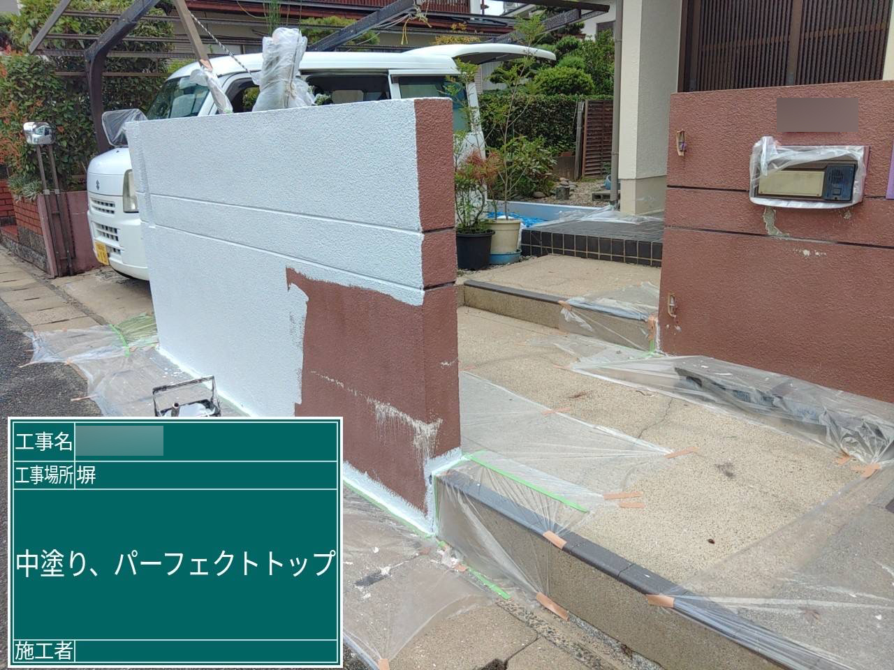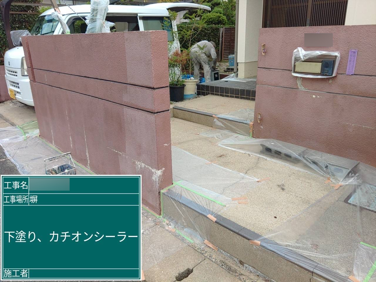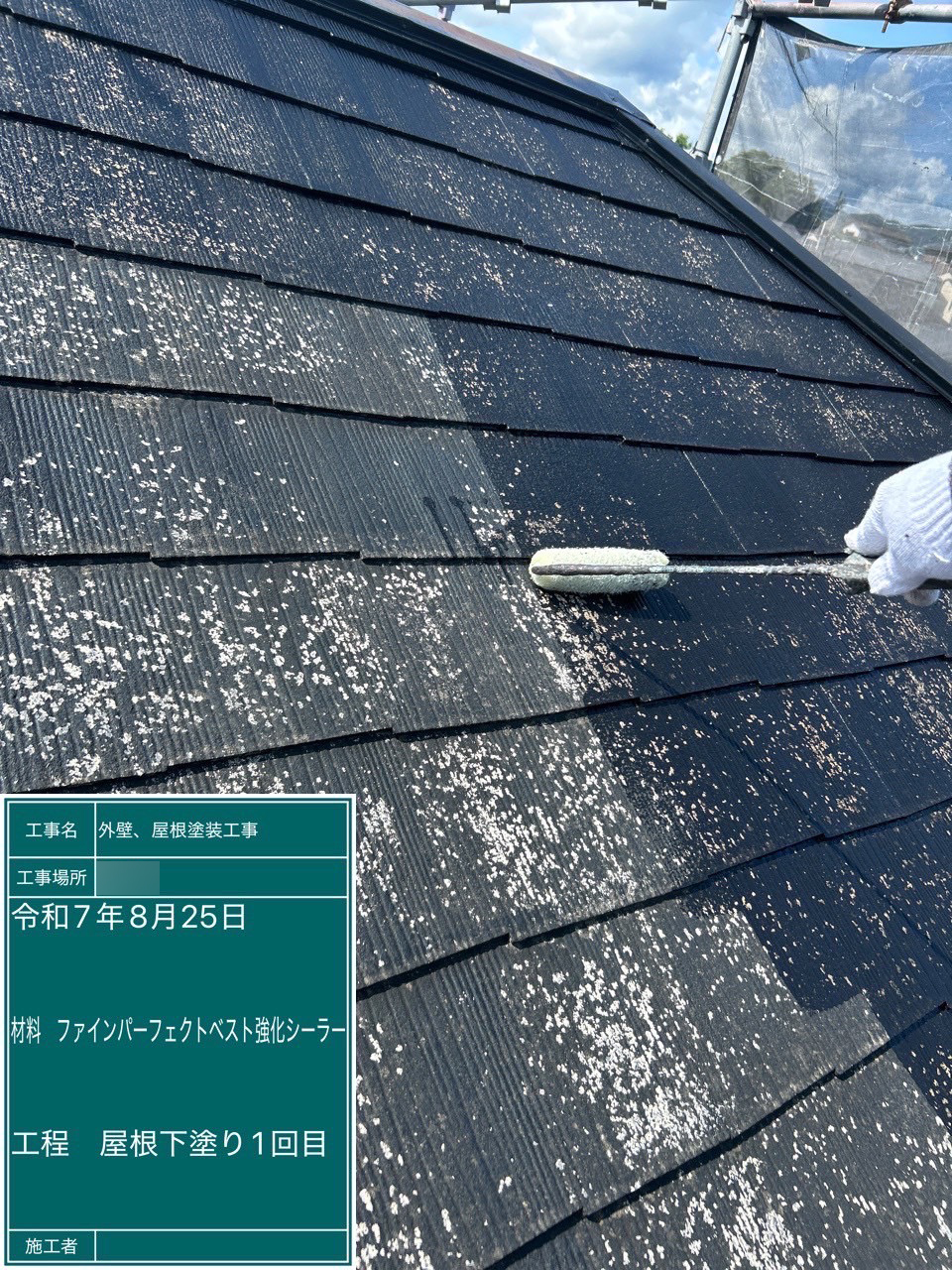 施工内容 | 外壁 門柱 高圧洗浄 外壁 下塗り ファインパーフェクトシーラー 中上塗り パーフェクトトップ 雨樋 ケレン 下塗り ファインパーフェクトシーラー 中上塗り ファインパーフェクトトップ 雨戸 格子 ケレン 下塗り ハイポンファインプライマーⅡ 中上塗り ファインSi 軒天 下塗り カチオンシーラー 中上塗り 水性ケンエース 門柱 下塗り カチオンシーラー 中上塗り パーフェクトトップ 基礎 下塗り カチオンシーラー 中上塗り ペースプロテクト |