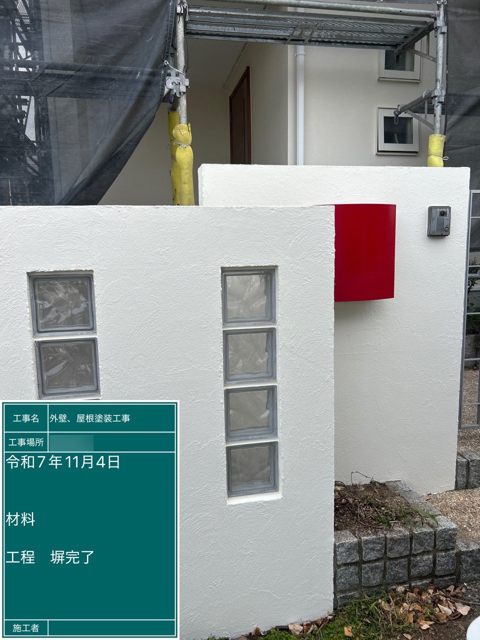 | 施工内容 | 屋根外壁 高圧洗浄 屋根下塗り ファインパーフェクトベスト強化シーラー 中上塗り ファインパーフェクトベスト 壁 下塗り カチオンシーラー 下塗り パーフェクトフィーラー 中上塗り パーフェクトトップ 雨樋下塗り ファインパーフェクトシーラー 中上塗り ファインSi 軒天 下塗り カチオンシーラー 中上塗り 水性ケンエース 破風 下塗り ファインパーフェクトシーラー 中上塗り ファインSi 小庇 ケレン 錆止めハイポンファインデクロ 中上塗り ファインSi ベランダ床 FRP トップコート ウッドデッキ 柱 ケレン キシラデコール ベランダ笠木 ジョイント コーキング ポスト 錆止め ファインSi 門柱塀 下塗り カチオンシーラー 中上塗り アートフレッシュ |