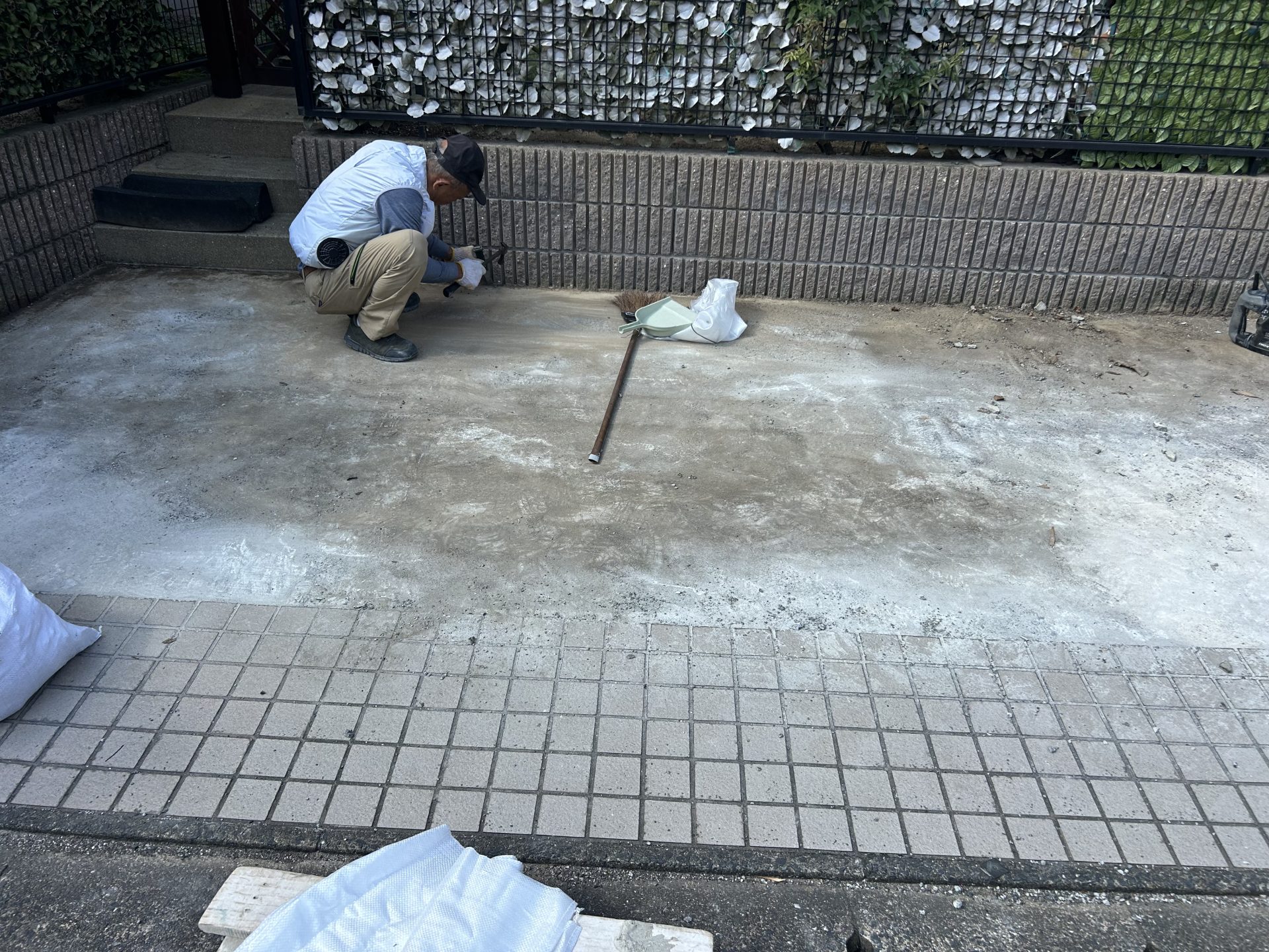 【オススメ】筑紫野市・小郡市近辺の屋根外壁塗装はORANGEコミュニケーション > 全ての施工事例 > その他工事 > 筑紫野市光が丘N様邸の駐車場補修フロアハード工事